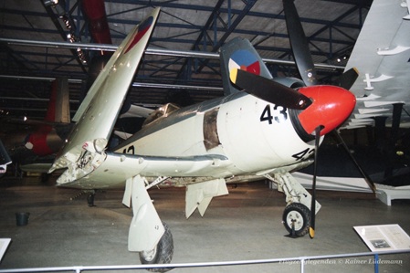 Bewaffnung: vier 20 mm Kanonen in den Tragflächen, plus Unterflügelhalter für acht 27 kg Raketen oder zwei 454 kg Bomben.