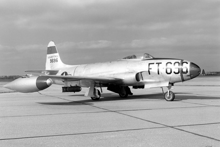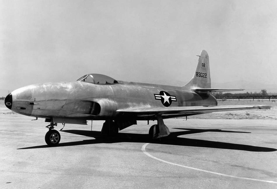 Die P-80 Shooting Star (Sternschnuppe), ein schlanker Tiefdecker mit einziehbarem Dreibeinfahrwerk, nahm Anfang 1945 den Einsatz bei der USAAF auf und bis zum Ende des Zweiten Weltkriegs sind 45 Exemplare ausgeliefert worden. Zwei davon wurden zur Erprobung nach Italien geschickt aber sorgfältig vom Kampfgeschehen ferngehalten worden. Wegen der ausgezeichneten Leistung dieses ersten Jet-Kampfflugzeugs sollten 5.000 Exemplare des Typs gebaut werden, aber diese Zahl wurde nach dem Sieg der USA über Japan drastisch reduziert. Das Modell wurde jedoch zur Ausrüstung von USAAF-Einheiten im Fronteinsatz gewählt, und die im Juni 1950 bei der US Far East Air Force fliegenden Maschinen wurden bei Ausbruch des Koreakriegs eingesetzt.