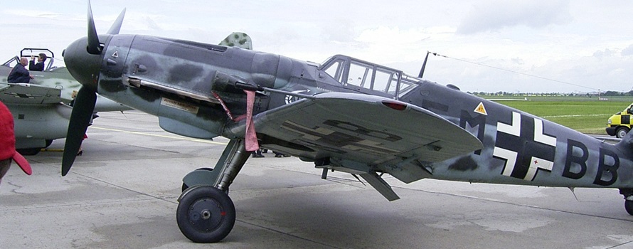 Die Entwicklung dieses Jagdflugzeuges begann bereits im Jahr 1934. Der Erstflug der Messerschmitt Bf 109 V1 fand im September 1934 statt. Anfang 1936 folgten die verbesserten Varianten V2 und V3, welche mit Jumo-Motoren des Typs 210 Da oder Ea ausgerüstet. Die Höchstleistung betrug 690 PS bzw. 630 PS für 30 min Dauerlaufzeit. In Konkurrenz mit den Flugzeugtypen Arado Ar 80, Focke-Wulf Fw 159 und der Heinkel He 112 ging die Bf 109 als Siegerin aus dem Wettbewerb hervor und wurde das Standard-Jagdflugzeug der faschistischen Luftwaffe. Mit dem Beginn des Zweiten Weltkrieges erhielt dieses Flugzeug stärkere Motoren, um die Forderungen der Luftwaffe nach mehr Reichweite, stärkerer Bewaffnung und Panzerung zu befriedigen. Die Startmasse stieg von rund 1800 kg auf 3200 kg. Die Geschwindigkeit konnte im Laufe der Weiterentwicklungen dieses Jagdflugzeuges von 480 auf 620 km/h erhöht werden, was auf den Einsatz stärkerer Motoren zurück zu führen war. Drei weitere V-Muster waren ersatzweise mit dem britischen Rolls Royce „Krestel IIS“ ausgerüstet, der 695 PS leisten konnte.