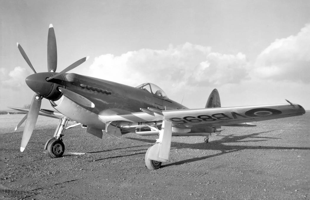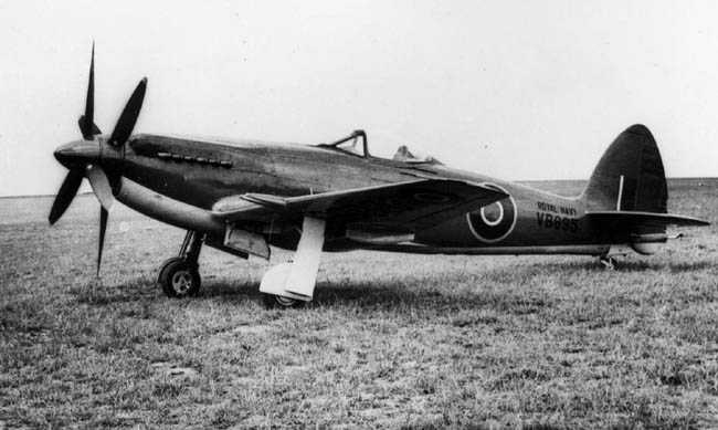 Die Supermarine Spiteful und Seafang wurden entwickelt, um die Spitfire bzw. die Seafire im Einsatz abzulösen. Oberflächlich gesehen erinnerte die Spiteful sehr an die Spitfire, war aber praktisch eine komplette Neukonstruktion mit rechtwinklig geschnittenen Flügeln mit Laminarprofil, deren dünner Querschnitt nach innen einklappbare Breitspur-Hauptafahrwerksbeine bedingte. Es wurden drei Prototypen von drei Versionen bestellt und ab Juni 1944 geflogen. Diese Modelle waren die Spiteful F.Mk 14 (Griffon 65/Fünfblatt-Propeller), die Spiteful F.Mk 15 (Griffon 89 oder 90/ 2 gegenläufige Dreiblatt-Propeller) und die Spiteful F.Mk 16 (Dreistufen-Griffon 101 und Fünfblatt-Propeller). Nachdem die 17. Maschine am 17. Januar 1947 fertiggestellt war, wurde ein Auftrag fiber67 Spiteful F.Mk 14 storniert. Von allen diesen Maschinen wurden nur drei von der RAF verwendet und an Versuchseinheiten geliefert. Die Seafang, die sich von der Spiteful durch eine komplette Flugzeug-trägerausrüstung unterschied, war auch nicht erfolgreicher. Aus einem Auftrag über zwei Prototypen und 150 Serienmaschinen wurden nur 18 Exemplare fertiggestellt. Hierzu zählten acht Seafang F.Mk 31 Jäger mit dem Griffon 61 Motor und zehn Seafang F.Mk 32 Jäger mit dem Griffon 89, gegenläufigen 3-Blatt-Propellern und Klappflügeln. Die Spiteful F.Mk 16 hatte 10,82 m Spannweite einen 2.375 PS (1.771 kW) Rolls Royce Griffon 101 Motor und erreichte in idealer Flughöhe eine Höchstgeschwindigkeit von 795 km/h.